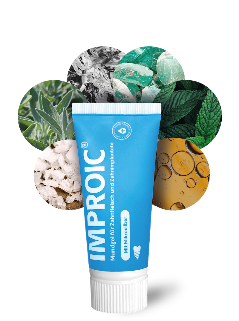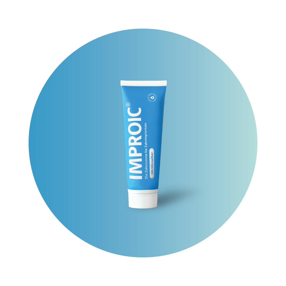 Mit nachgewiesen entzündungshemmenden Inhaltsstoffen beugt die Zahnpasta von IMPROIC® optimal Entzündungen im Mund- und Rachenraum vor und bietet somit ein wirkungsvolles Instrument gegen Mukositis sowie Periimplantitis.