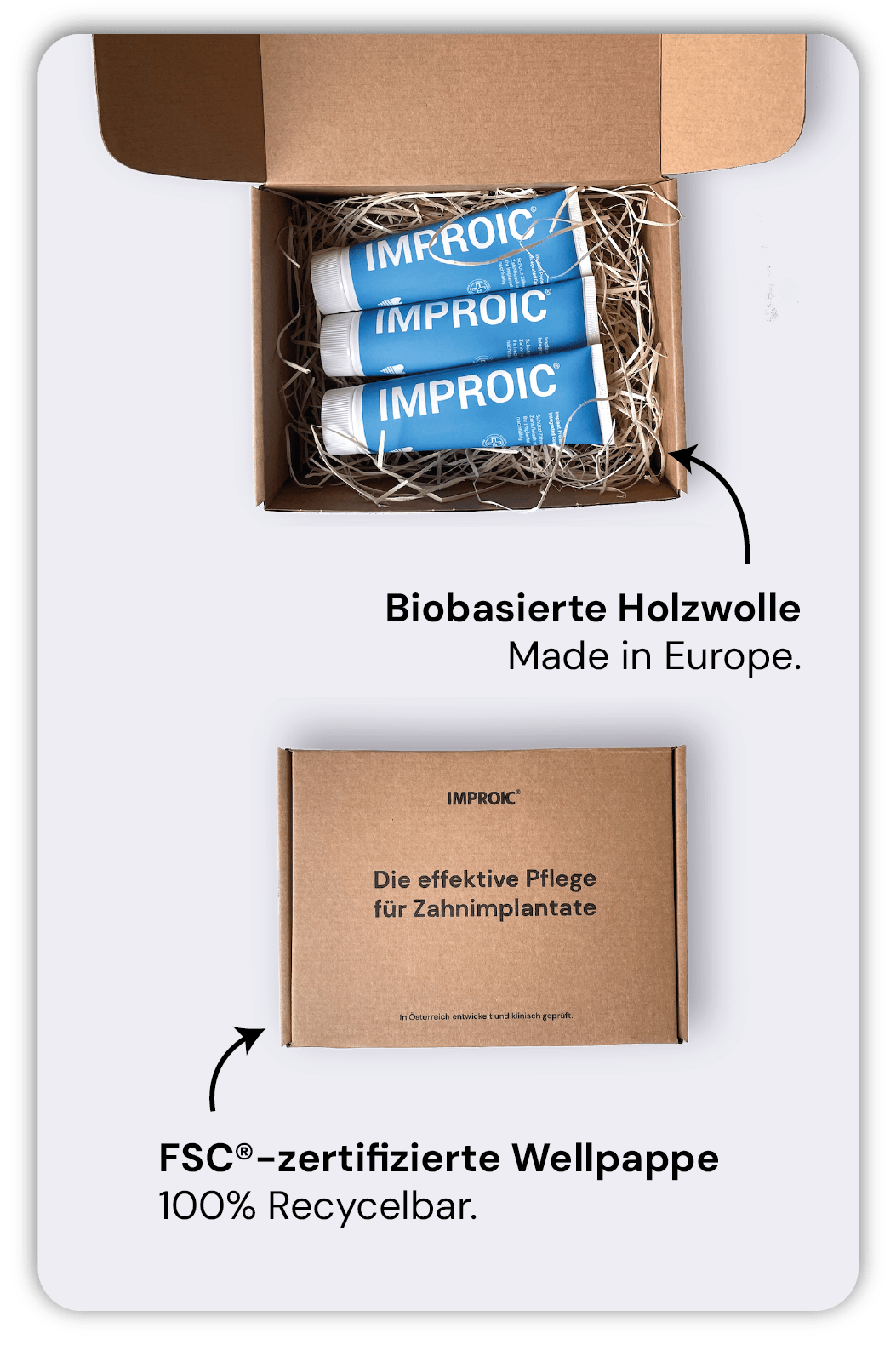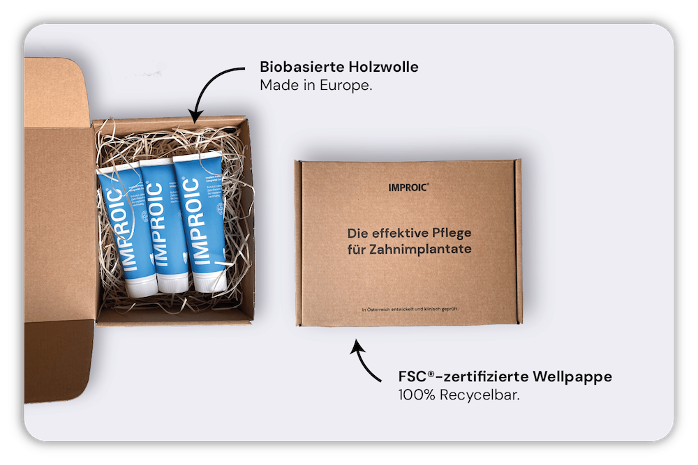 IMPROIC® wird seit Jahren von zahlreichen zufriedenen ImplantatträgerInnen angewendet.IMPROIC® ist speziell als Zahnpasta für Menschen mit Zahnimplantaten entwickelt worden, die ihren Zahnersatz langfristig und nachhaltig reinigen und pflegen wollen. Durch die regelmäßige Anwendung wird die Lebensdauer Ihres Implantats verlängert.